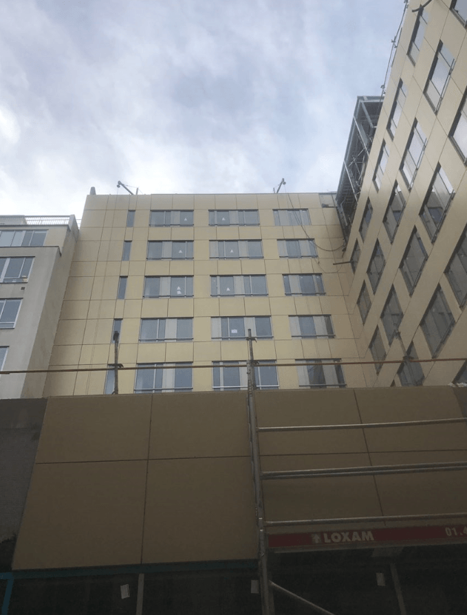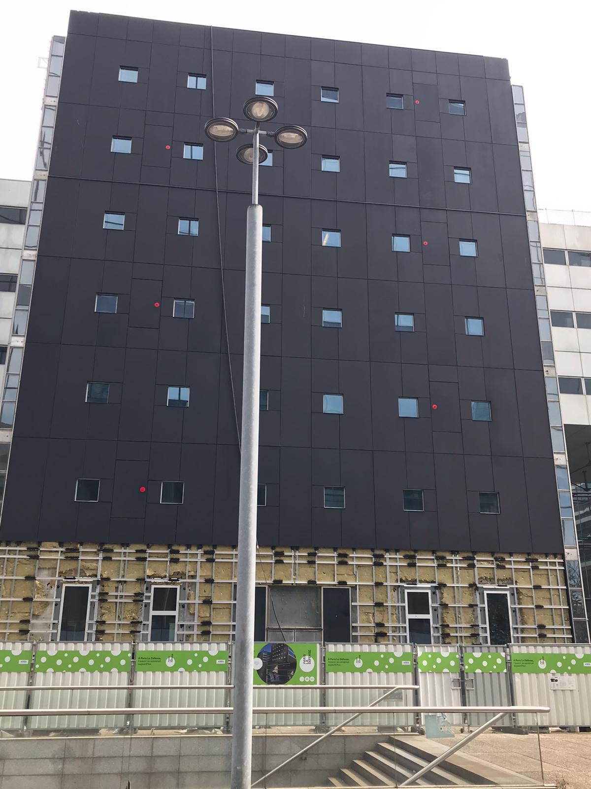 : mise en place châssis, gardes-corps vitrés, habillage portes coupe-feu, mise en place caillebotis escaliers.